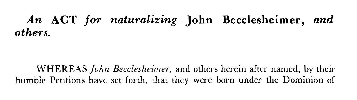 John Becclesheimer's Naturalization