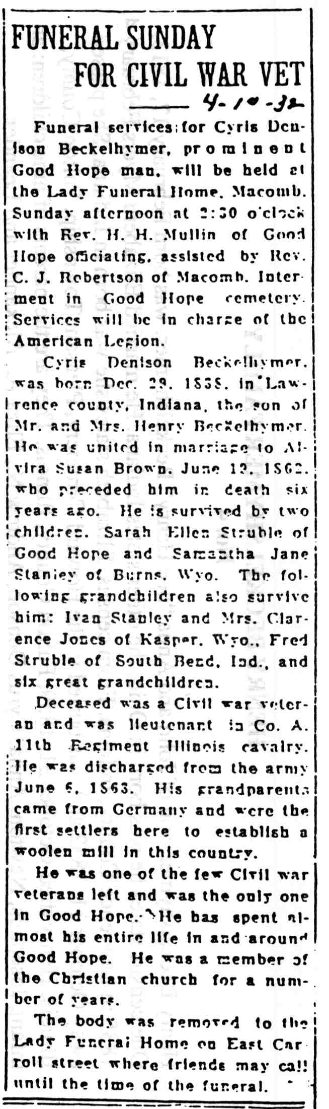 Cyrus Denison Beckelhymer (son of Henry) obit1
