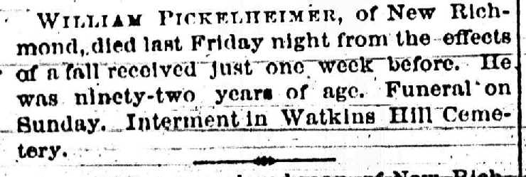 William R Pickelheimer (son of David) from Clermont Courier, 16 Nov 1887