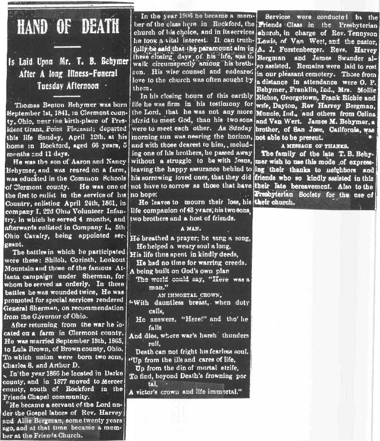 Thomas Benton Behymer (son of Aaron) from Rockford Press, 17 Apr 1908